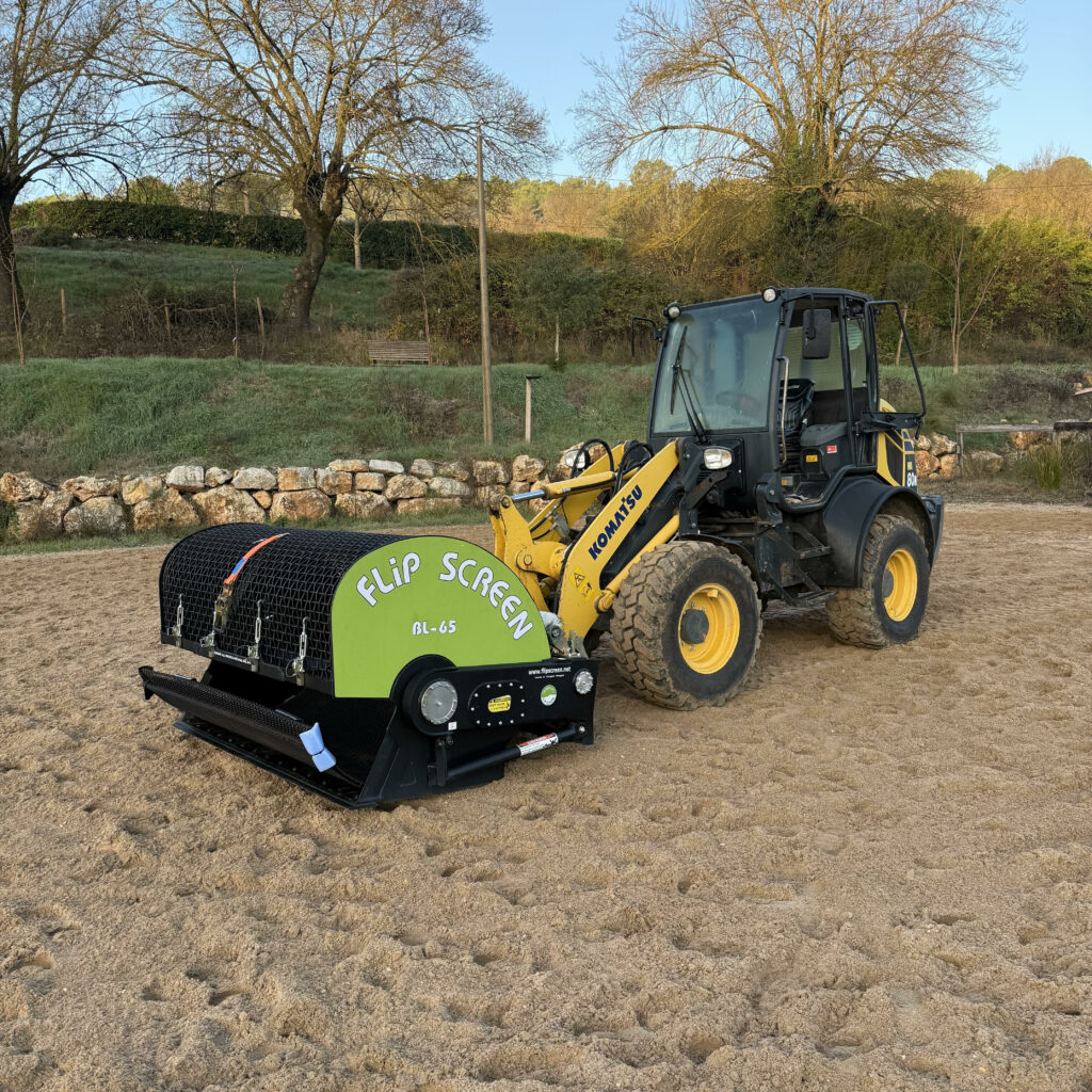 Nous intervenons pour niveler et entretenir vos carrières existantes grâce a notre Niveleuse et notre Cribleuse, permettant de nettoyer les sols et retirer les cailloux pour un sable plus propre et homogène.